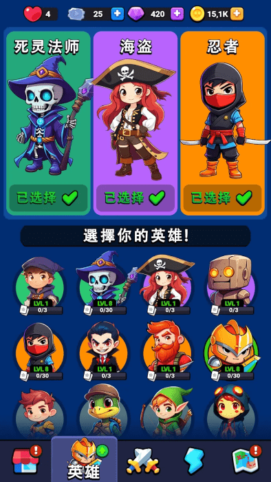 解锁一批拥有独特能力的传奇角色。从无畏的战士到狡猾的战略家,每位英雄都为战场带来独特的优势。策略性地选择英雄领导您的军队,在每场战斗中占据上风。游戏的英雄管理系统允许您开发和装备英雄,以适应您的策略需求。