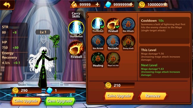 1、丰富的角色技能,收集更多的金币去解锁更多的装备与技能,让自己变得强大。