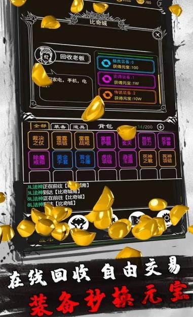 1、神器掉落,一刀999不是梦,自由交易武器,让你成为沙城老大。