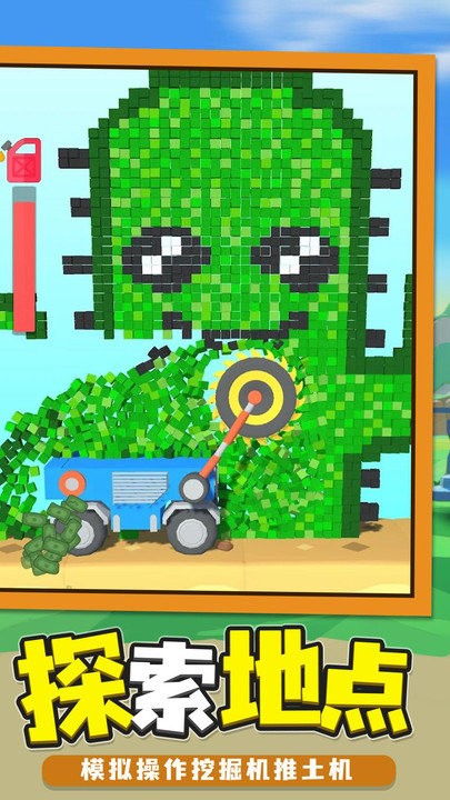 ·真实的物理引擎,玩家可以通过摇杆来操控挖掘机来进行挖掘和移动