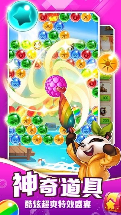 Q萌可爱的熊猫、特效酷炫的道具,具有挑战性的关卡、细腻精美的画风都等着你来体验,玩法轻松简单无压力,大人小孩都爱玩休闲娱乐的不二之选,让你根本停不下来