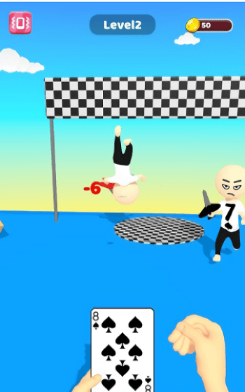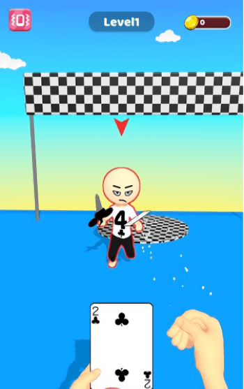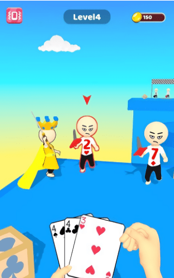 1、观察箭头指示的扑克人身上是什么牌面,点选比他数值大的扑克牌并发射将其消灭。