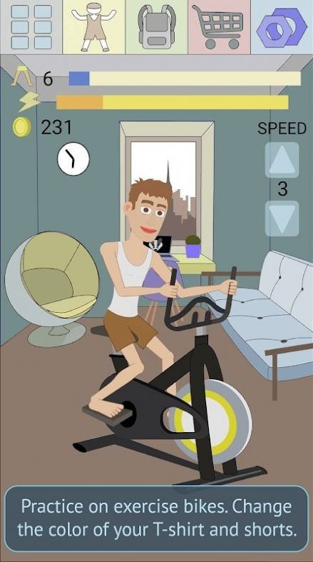 1、游戏中有4个锻炼地点:哑铃、健身车、卧推和跑步机都能来尽情体验;