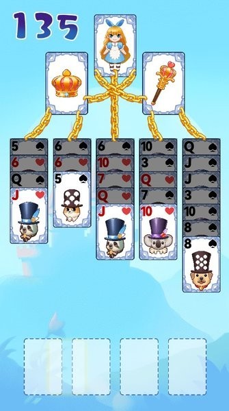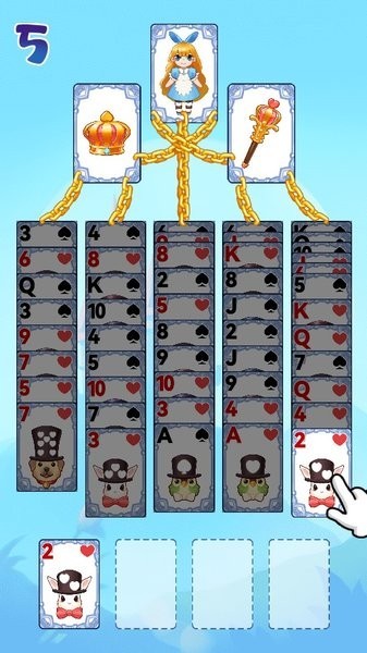 游戏胜利的条件是将五列锁定纸牌全部解锁,即让女皇登基。如果四个空格被填满,则游戏失败。这款游戏的玩法简单易懂,