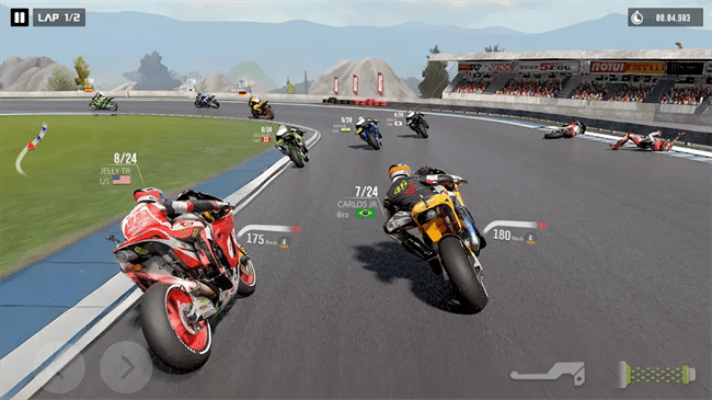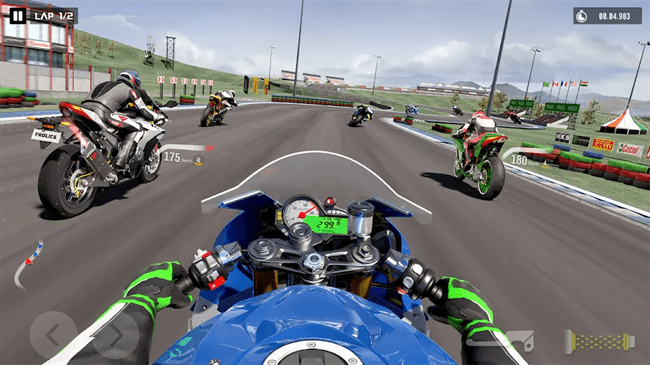 提供 10 种不同的运动摩托车和骑手。每个人都可以以锋利的精度统治直道并通过弯道。自定义选项即将可用。在这里,摩托赛车爱好者将能够升级他们的重型摩托车。