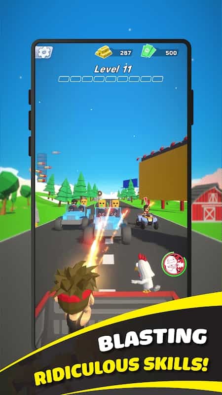 2、向对手投掷炸弹,帮助你赢得比赛,解锁新车或武器。