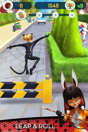 3、瓢虫雷迪和黑猫造型高度还原动画片中的角色人物,在酷跑的过程中有很多不同类型的动作,很好玩也很有意思;