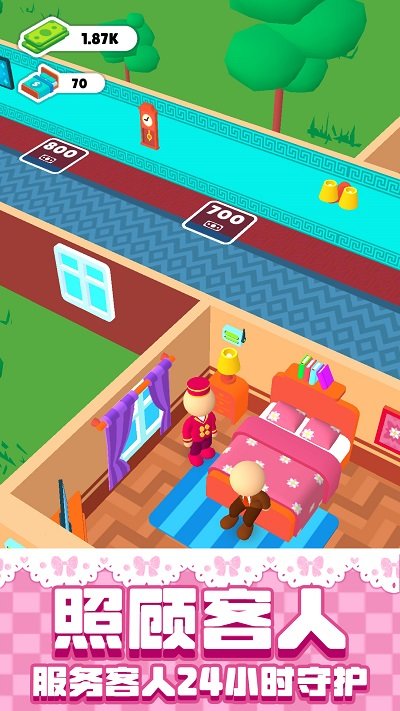 旅馆模拟器最新版是一款可以成为旅店老板的全新经营模拟游戏,玩家可以不断升级房间设置来吸引更多顾客,游戏中精彩游戏玩法,招募各种员工来进行挑战,无限趣味冒险,还可以招募忍受来帮助经营,感兴趣的话就来下载试试吧!