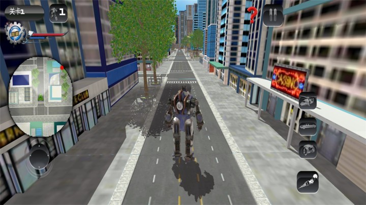 3、打败所有的敌人,拯救城市,虚拟摇杆与按键的操控方式。