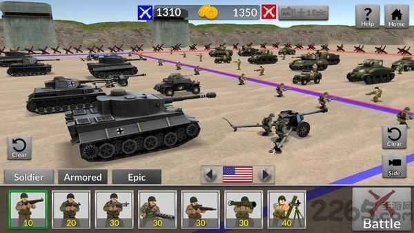 非常有趣的排兵布阵的游戏,原汁原味的二战年代感,没有如今这些先进的高科技作战手段,战场局势随时都可能改变,玩家在战场上有三个国家可以进行选择,不同的国家有不同的对战策略,军士,大炮等装备也不一样,过控制坦克,战舰,飞机和军队来作战,合理的搭配兵种和阵型是获得战争胜利的前提。
