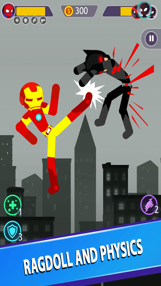 火柴人超级格斗是一个非常有趣和有吸引力的格斗游戏.玩家将会扮演火柴人超级英雄,与黑暗军团进行作战!玩家控制的角色可以自由的选择,对手也都是一些非常厉害的一些反派角色或者是和你一样的角色.
