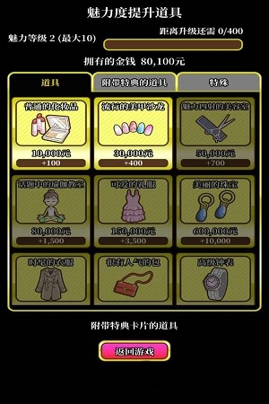 2.用赚到的钱购买提升魅力的道具,可以提升雫的魅力。
