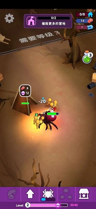 但要小心——你的敌人会随着时间的流逝而变得更强大,他们会配备武器来消灭你的蜘蛛殖民地。