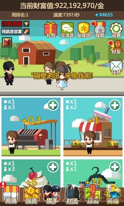 全民首富游戏试玩版是一款全民首富安卓版系列的商业模拟游戏,不断的扩大自己的经营范围,最后成为这个世界上最富有的人,通知经济世界。