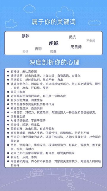 非常好玩的经典休闲文字类游戏,游戏主打心理测试玩法,精彩的剧情故事,丰富的游戏玩法,在游戏中玩家需要根据故事进行回答,不同的选择映射不同的心境,让你在这里更加的了解自己,能够走进自己的内心,去发现一个真实的自己。喜欢的朋友不要错过了。
