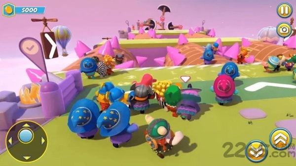3、开始玩这个游戏,并通过将他们推向障碍赛来击败对手,会有很多玩家冲向终点。