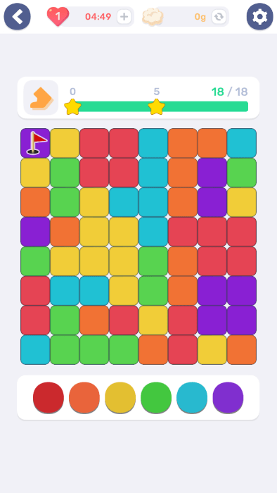 色彩翻翻是一个烧脑解谜的益智游戏,在游戏中,您需要根据关卡给出的色彩组合,休闲益智游戏将带您进入一个奇妙的颜色世界。以和周围的色块进行同色融合,为当前的色块更换颜色,最终将整个区域合并成一个颜色。