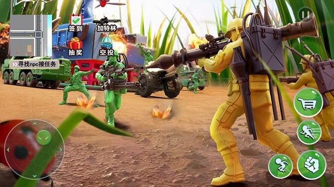 玩具兵模拟器游戏是一个趣味性的战斗游戏,游戏中有着精彩有趣的战斗场景,玩家在这里将操作着自己的人物角色去进行战斗比拼。在这里你将化身军队的队长,可以尽情展示自己的军事才能去击败对手,可以布置各种各样的战术以及策略,多种不同的玩法都能尽情体验。
