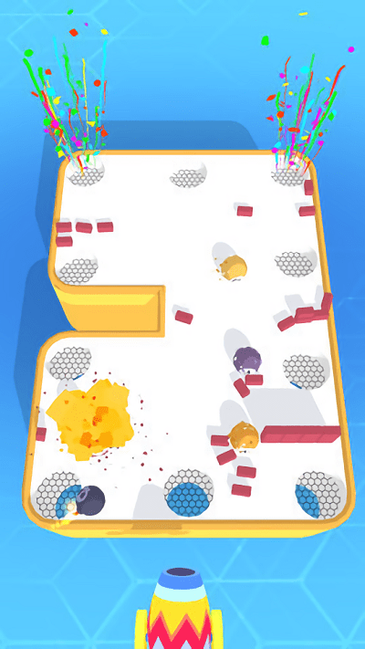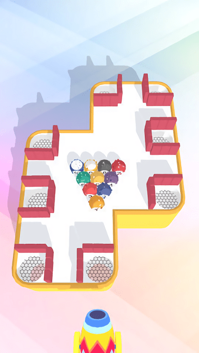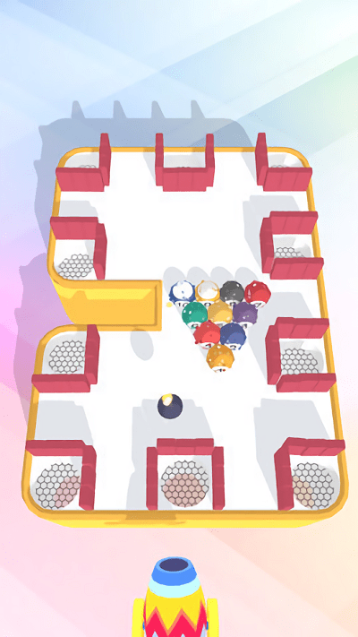 这是个很好玩的休闲小游戏。这里没有球杆,球台的形状也是随机生成的,而你要做的就是让所有的球都成功的进入到洞中,炮弹数量有限,调整好角度瞄准之后再发射,在实战中慢慢摸索技巧,接下来就让我们看看你的表现吧!