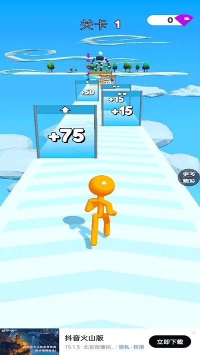 果冻人要上天游戏是趣味的跑酷游戏,画面场景比较的简约,玩家将会操控着自己的角色进行体验,各种不同的障碍物都需要你躲避,还会有光幕上的加减乘除能够尝试,增加角色的身高以及腰围等数据,喜欢的小伙伴快来下载试试吧。