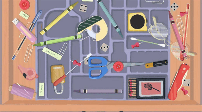 分拣瓶子、贴纸或勺子、钢笔和其他物品。