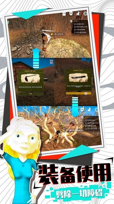 个人生存类游戏,在大山中的女孩遭遇干旱和饥荒,带领乡亲走出大山,玩家扮演大山女孩面对饥荒你将带领乡亲逃离大山,搜集更多物资建造新的生存村落,伐木采集物资资源,发展你的村庄。寻找美好未来的明天.