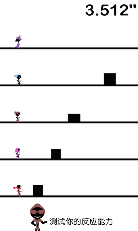 其实不用说大家也知道玩这个游戏,需要注意力的高度集中。提醒大家注意力不要集中在火柴人起跳后的效果上,而是把注意力放在整个画面以及火柴人的起跳点上。火柴人起跳之后是死是活已经不是我们能控制的了,我们要做的就是尽量选择合适的起跳点让它存活下来。