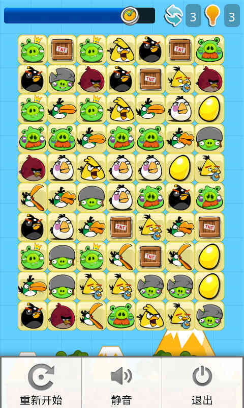 《疯狂的小鸟连连看》是一款益智休闲的消除类游戏,游戏是以愤怒的小鸟人物作为主调的,里面的图案全部都是愤怒的小鸟,小鸟迷可不能错过哦,画面清晰简单,玩起来畅顺,而且看着背景就感觉很舒服了。