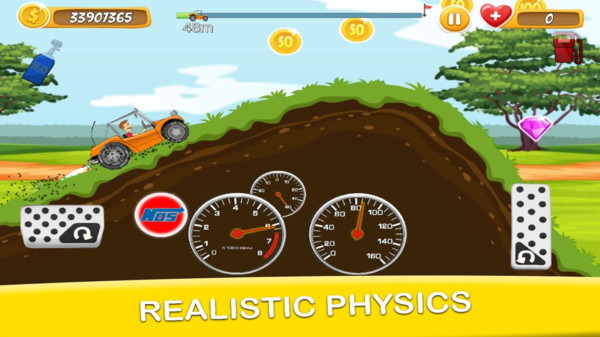 3.升级您的汽车并解锁新的美丽风景。使用助力器为您的汽车提供动力,以延长行驶里程并探索赛车登山游戏。
