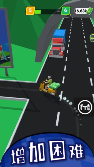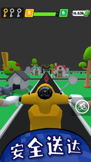 2、你在城市中的穿梭送餐过程,高度模拟真实外卖员的工作状态。在规定时间内抵达目标地点,不仅能获得全额奖励,还能提升口碑评价。