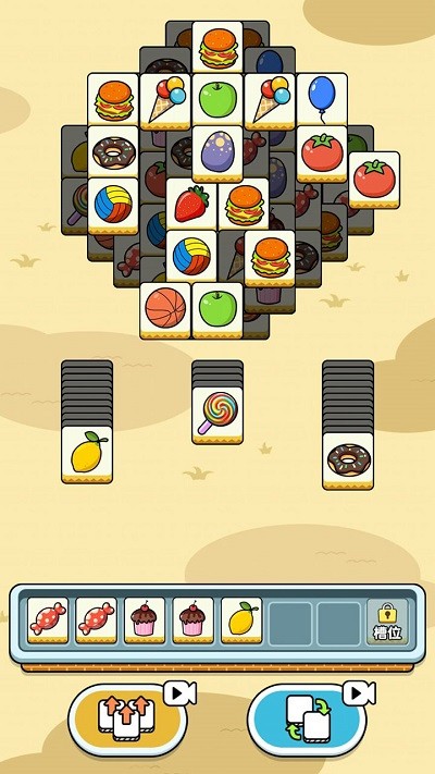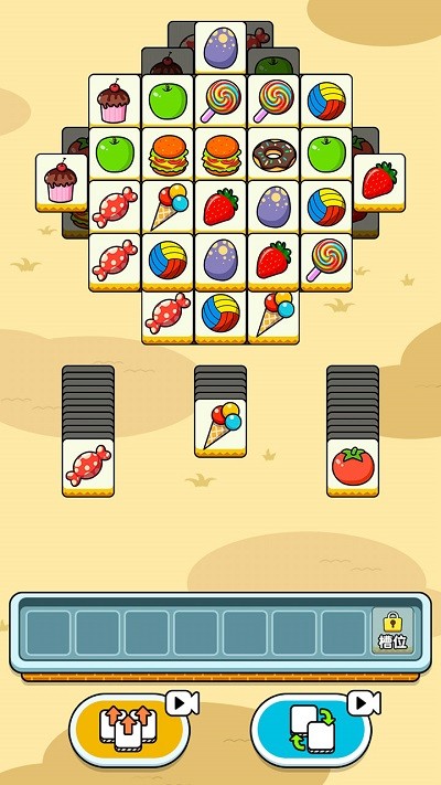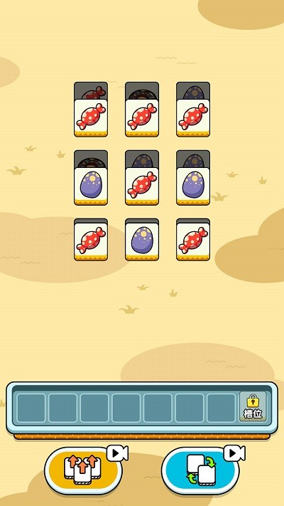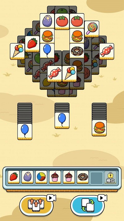 ·游戏上方为道具区,下方是合成槽,玩家需要在上方的道具区找出三个一样道具