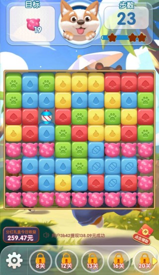 1、精美卡通的画面场景,各种可爱的消除元素;