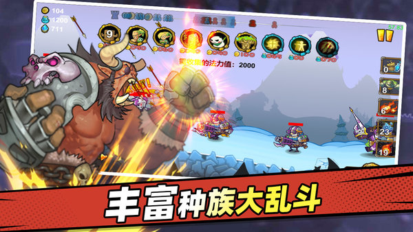 ·游戏包含了人族、兽族、精灵三大势力阵营,兵种人物特色鲜明、技能丰富多样。刺激有趣的关卡玩法也会让你对2D策略游戏有全新的认识
