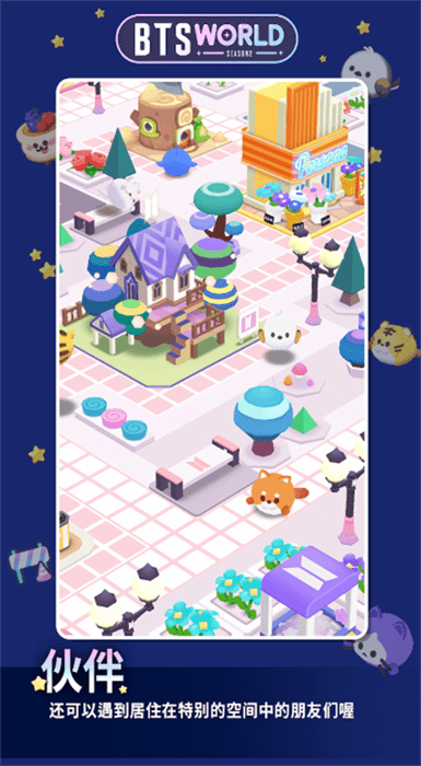 跟着伙伴一起填满BTS LAND,就能够帮助BTS成长更为茁壮。