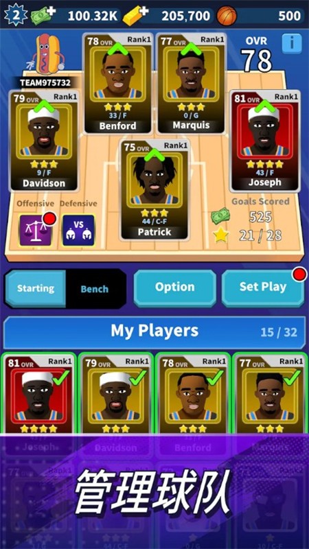 bm25篮球经理2025破解版免广告领取奖励版本中玩家可以经营和管理篮球俱乐部,这里有众多知名球星可以选择,你可以选择合适的球员来进行培养,组成一只强大的篮球梦之队,征战各种比赛,根据球员特性合理布置战术来赢得比赛!
