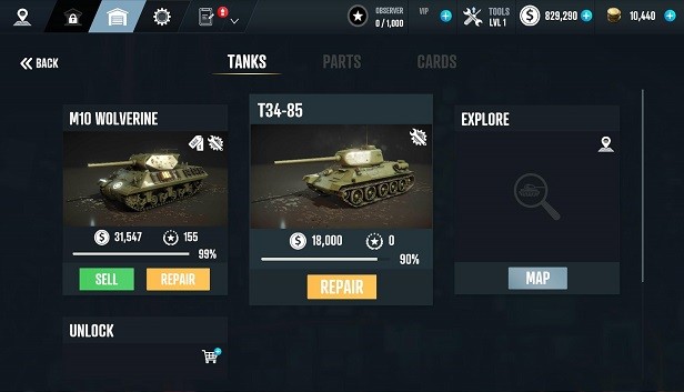 3、各种修理工具应有尽有,你能够操控自己的工具对每一款坦克进行修理的操作!