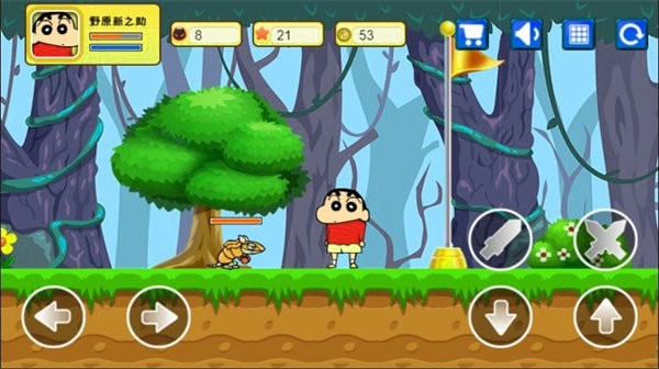 蜡笔小新大闯关是跑酷类的游戏,画面十分的精致细腻,玩家需要在邪恶的森林世界中进行挑战,多种不同的趣味游戏内容可以体验,随着游戏的继续,关卡的难度是会不断上升的。