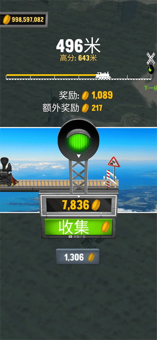 驾驶的过程当中,避免撞到其他的火车和障碍物,成功闯关还有奖励可以领取。