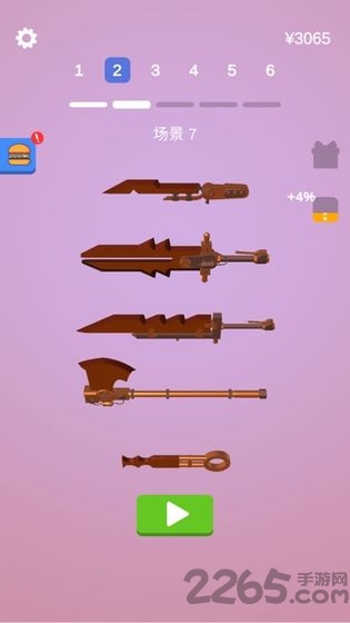 1、根据系统给出的阴影制作各种造型独特的武器,正确无误之后才能通关;