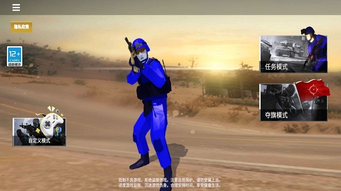 夺旗模式玩法:一场规模宏大的战役,双方分红蓝阵营,多达100多名士兵在战场上冲锋陷阵!你是蓝方阵营的一员,与你的蓝色盟友一起战斗! 使用直升机、坦克和枪支击败对手!