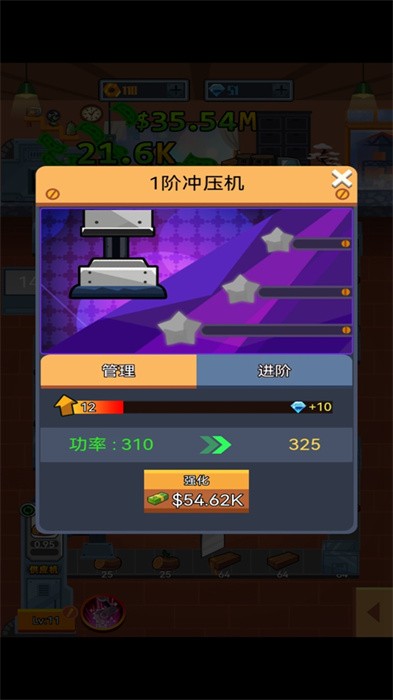 一款休闲类小游戏,游戏中你需要疯狂制造产品,赚取更多的财富,升级工厂。突然一天,你收到一份遗嘱:一个大工厂,可以生产很多物品,你要做的就是不断生产物品,扩大工厂,成为世界首富。