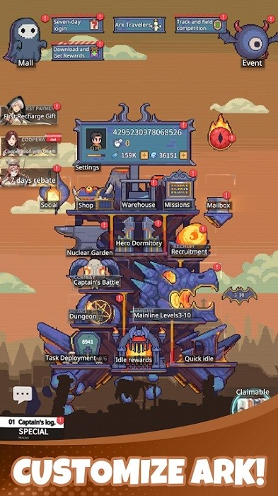 像素方舟国际服游戏是一款弹射类的放置战斗玩法,玩家们在游戏中进行更好的操作,组建你的队伍一起来这里进行战斗,还有很多的关卡等你来进行挑战,击败末日中的敌人,提升自己的实力,一起来这里看看吧!
