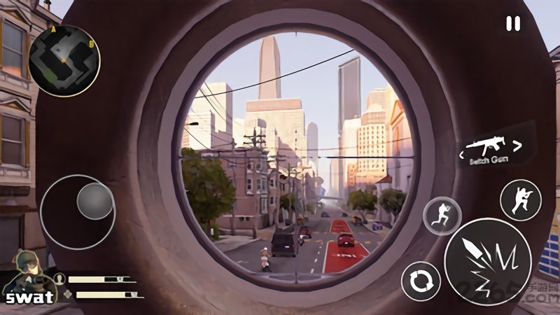 2、人物不能移动,左边上下移动调整距离,滑动屏幕空白位置移动狙击枪,快速瞄准射击;