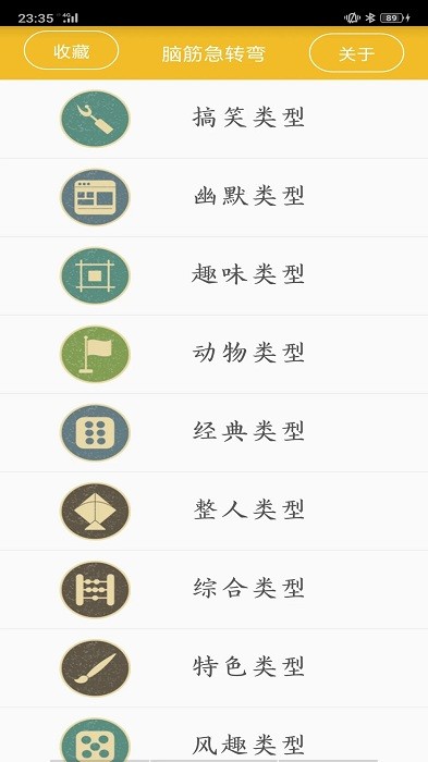 提供滑屏切换题目的功能,分类清楚,内容丰富,每个类别都有至少几百上千条谜语。