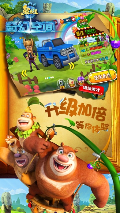 游戏中你将要扮演熊大、熊二和翠花你为了不让被光头破坏森林,你只能反击并且躲 过不同的障碍,打倒光头强和人类的高科技武器。在关卡中你要不断的收集宝石道具来解锁新的角色,来体验下这款刺激的射击游戏吧。