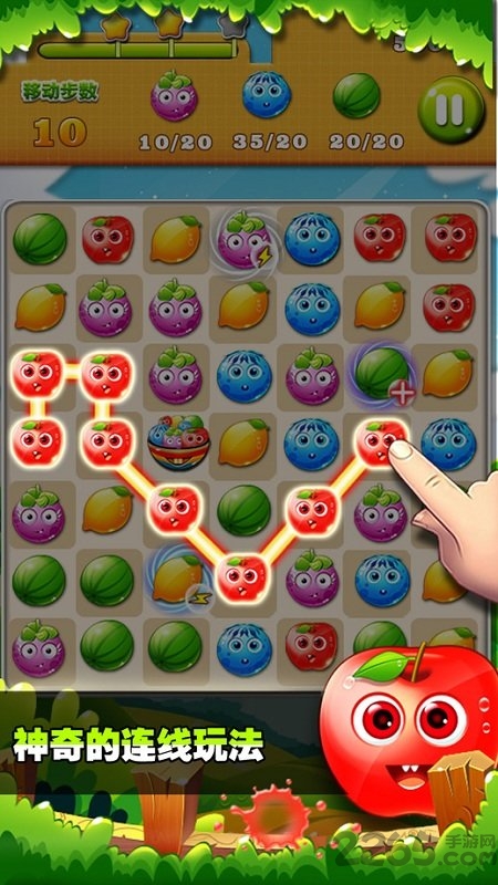 多关卡多目标的水果连线消除游戏,全新的消除玩法,超过100个关卡,给你不一样的消除体验,巧妙的关卡设计和收集水果的特殊玩法,让你一玩停不下来!居家旅行蹲坑必备,完胜爱消水果、水果爆破、水果连连看!