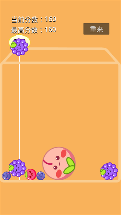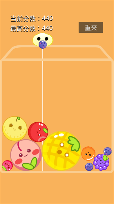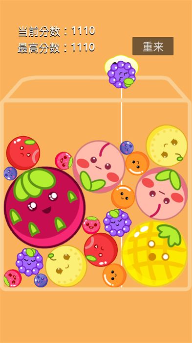 2、在游戏中要适时控制着自己的水果,然后就可以进行游戏的合成,完成游戏的挑战。