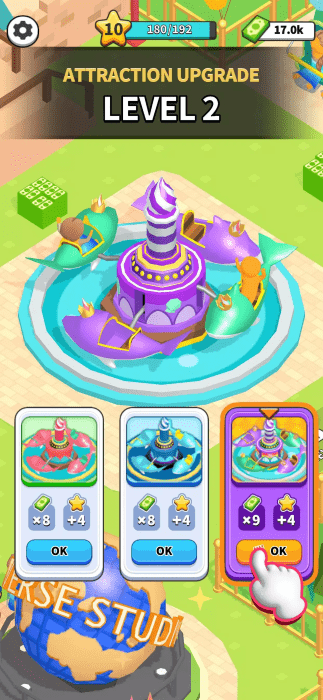 穿越多个关卡,每个关卡都有其独特的主题游乐设施和挑战。发现每个区域的兴奋,并通过创新的景点让您的客人娱乐。