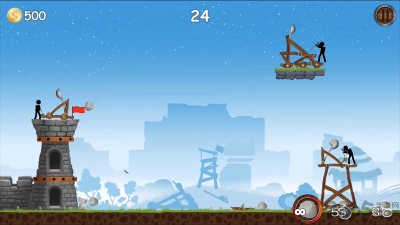 1、本次的游戏中火柴人将扮演中世纪的战士,使用投石机来抵抗敌人的进攻。