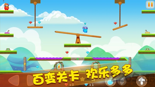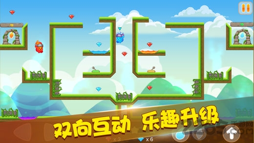 游戏中,会有很多困难需要克服,而随着关卡的增加,难度也会随着增加,你需要想办法将这些关卡尽力通关,才有可能帮助它们,并且你需要分别控制冰娃和火娃,吃到钻石,找到对应的大门,即可过关。注意,冰娃不能碰到火,火娃不能碰到水,冰娃和火娃都不能碰到毒气。冰火人冒险之旅马上开始,你准备好了吗?赶快开动你的大脑帮助冰火人吧!